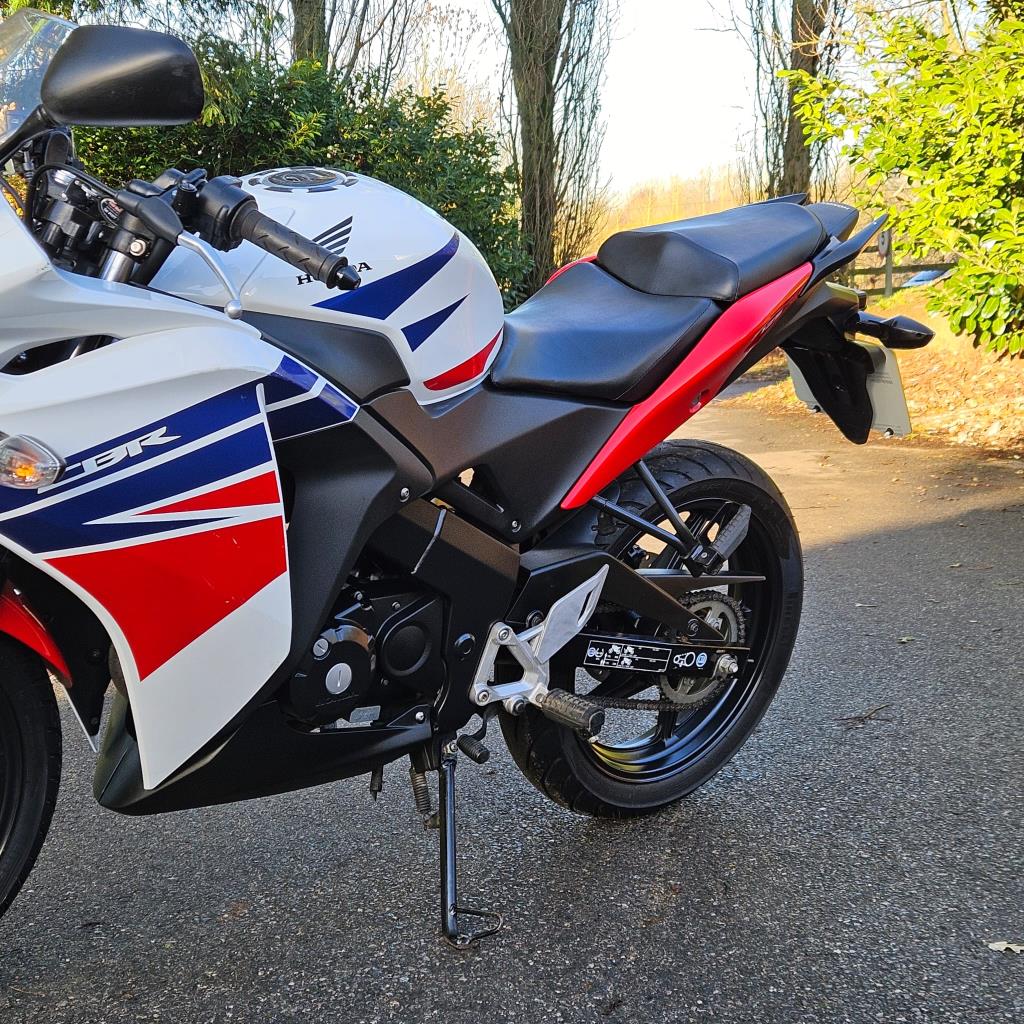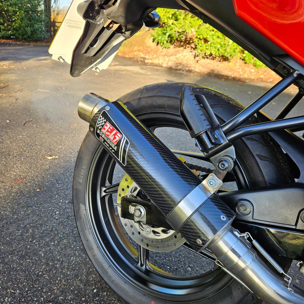 This is a sporty bike with HRC heritage while still being a manageable bike for a new rider. With easy and light controls the bike offers Hondas legendary build quality and reliability. This example is enhanced with a Yoshimura exhaust half system which adds to the overall aesthetics and tone.