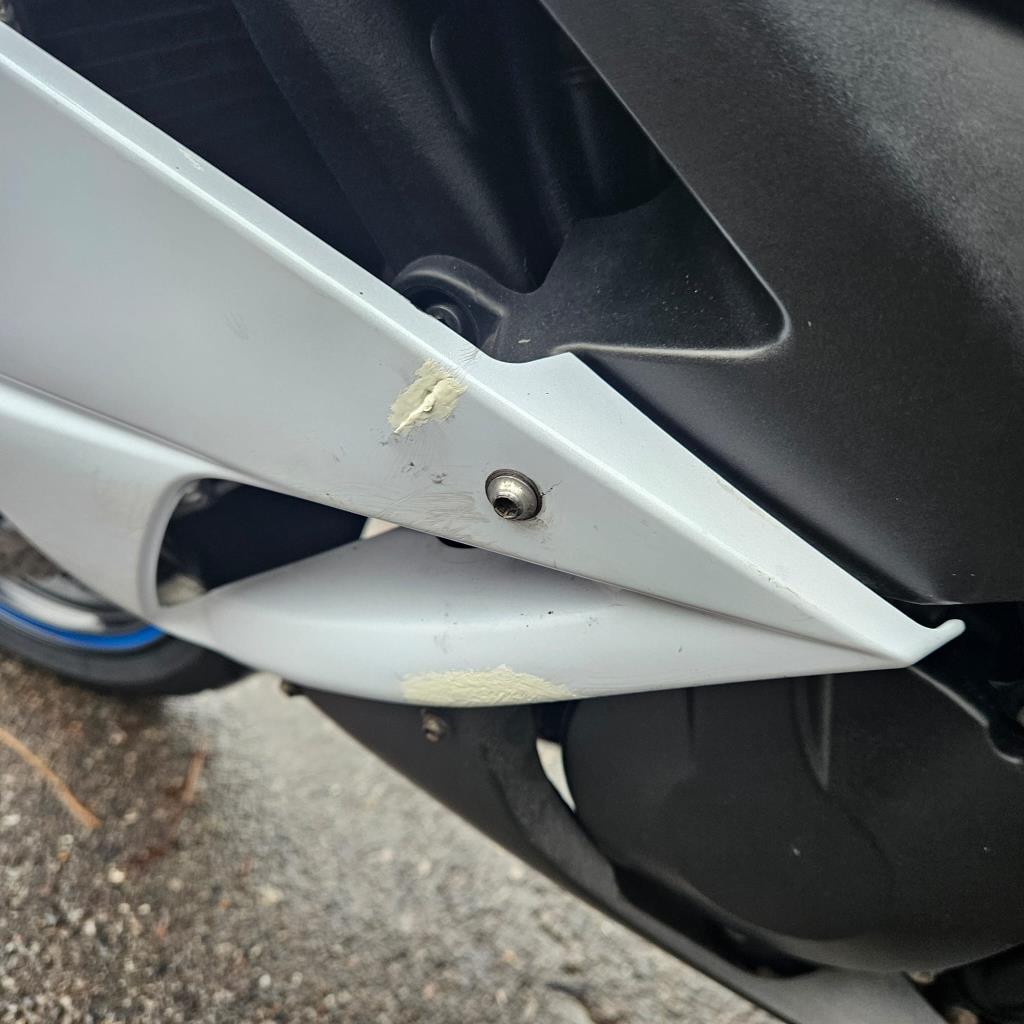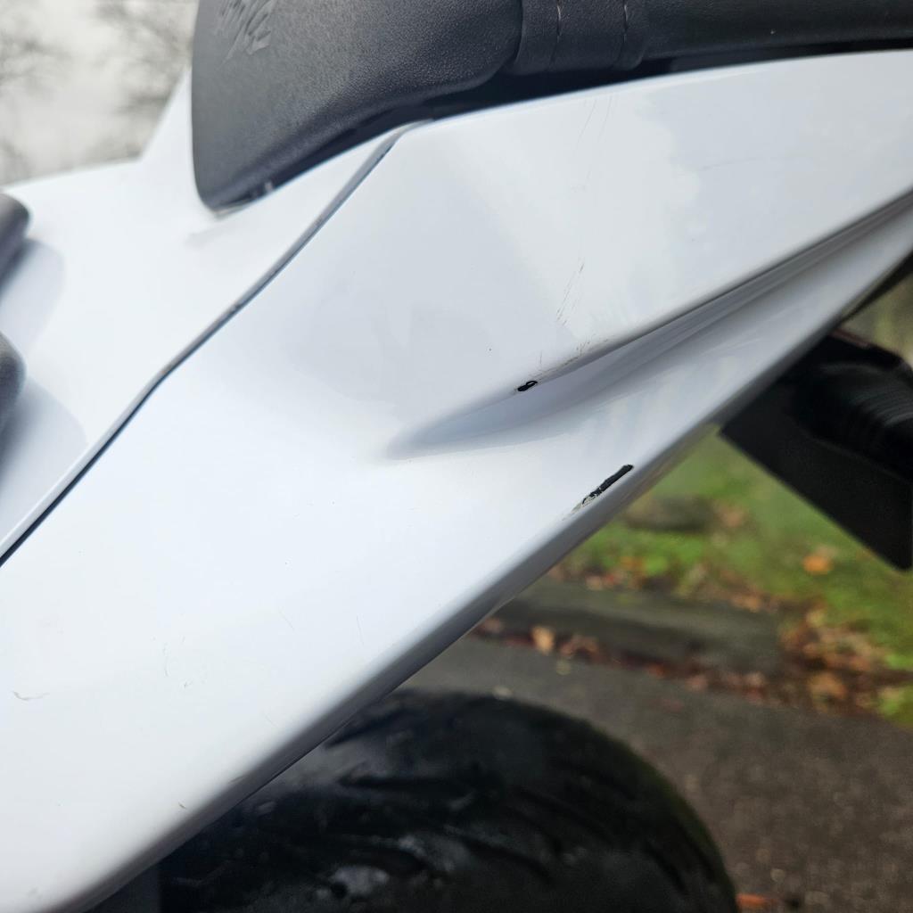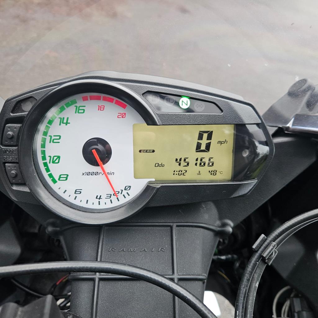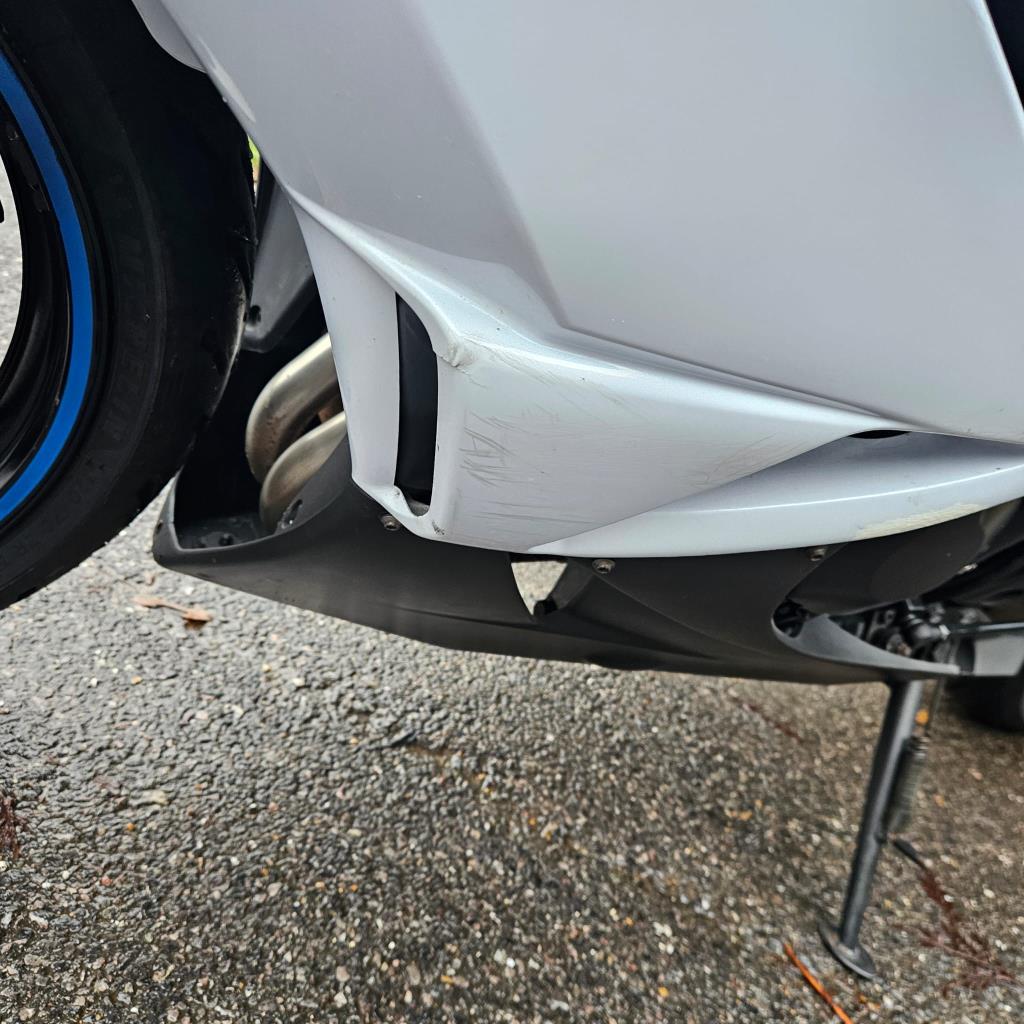 The bike has suffered a minor drop to the left hand side, and it has some poorly repaired damage on the mid fairing and around the edge of the nose cone, we have also noted that the lap timer doesn’t seam to function and the clock on the dash resets every time you switch the ignition on or off.