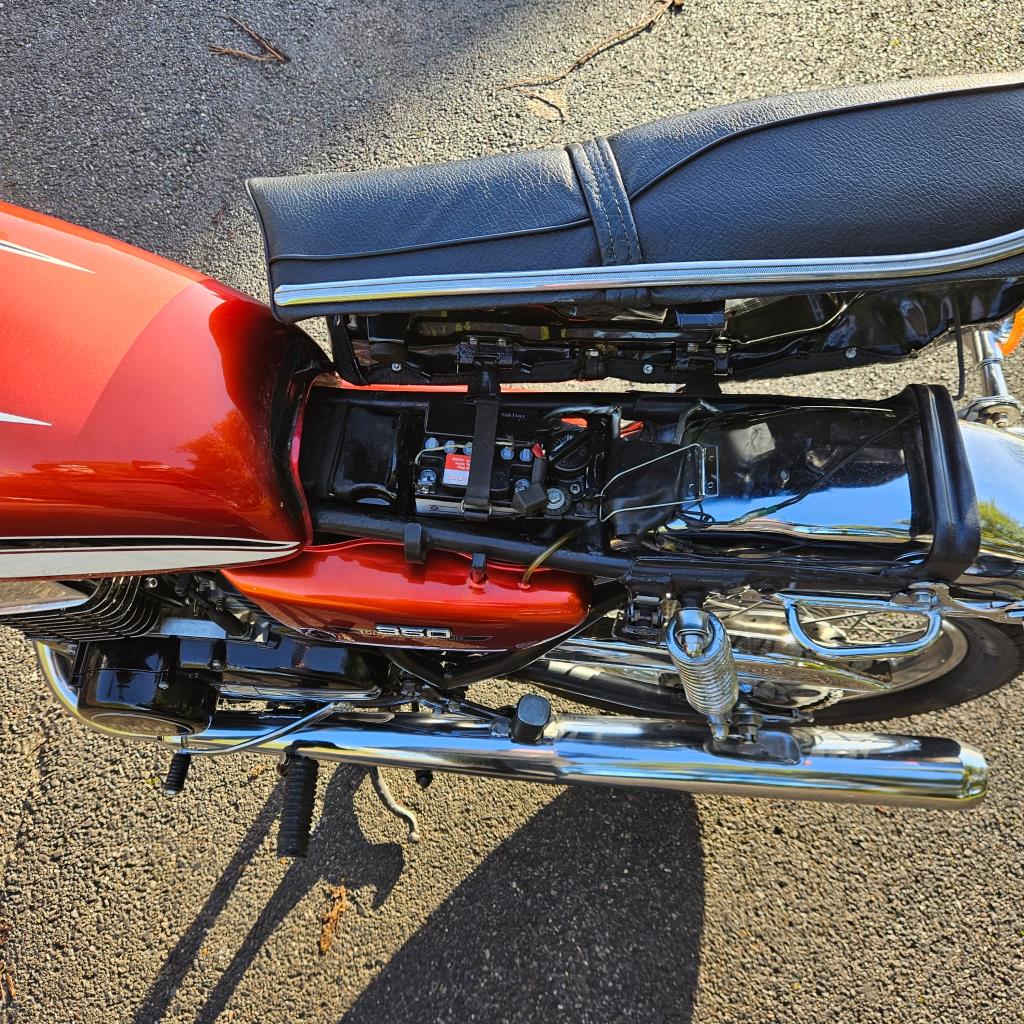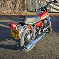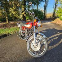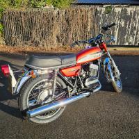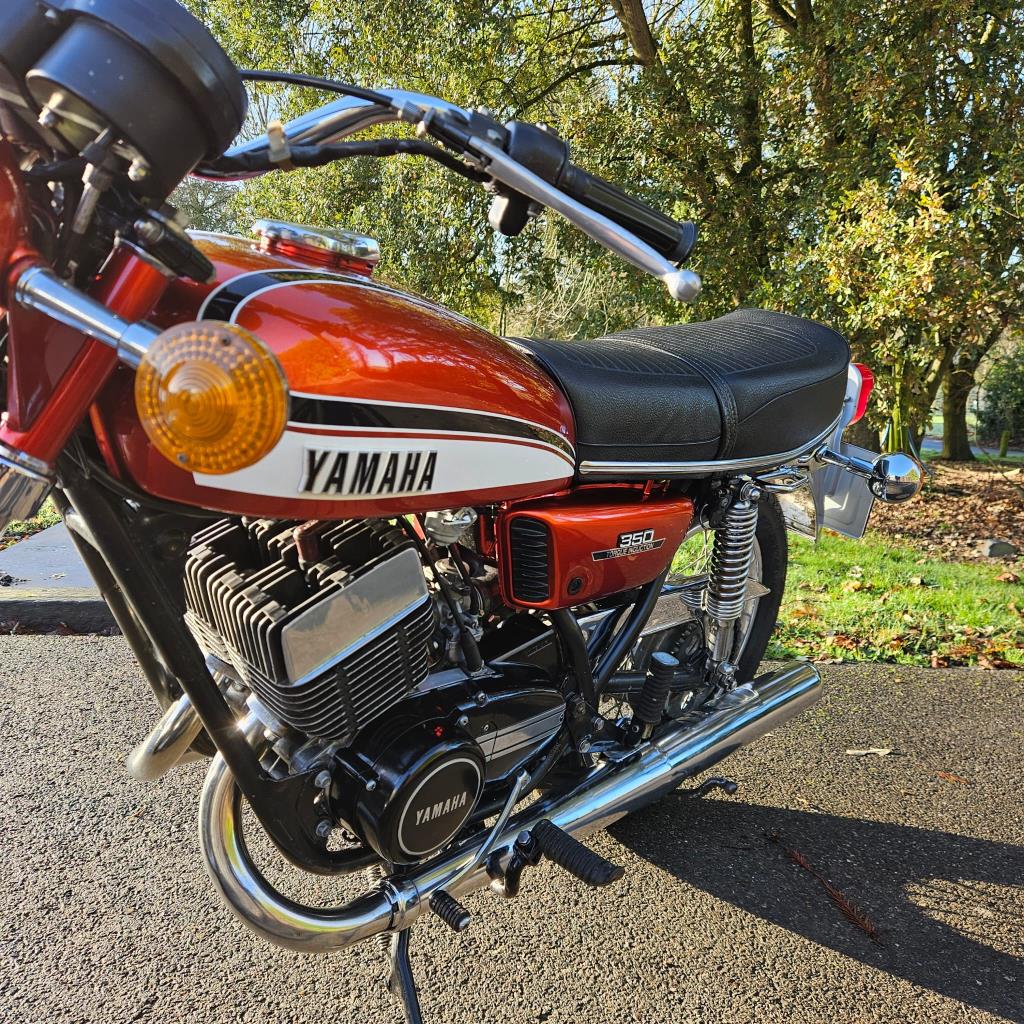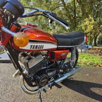 We have here a superb example of the original RD350 air cooled machine. A bike that was one of the defining machines of the 1970’s, finished in a stunning metallic red (more orange in the flesh) this bike has just had a recommission by ourselves, including new tyres, fuel system overhaul and a general service. This bike is ready to be enjoyed in all its wonderful 2 stroke nostalgia. Viewing highly recommended